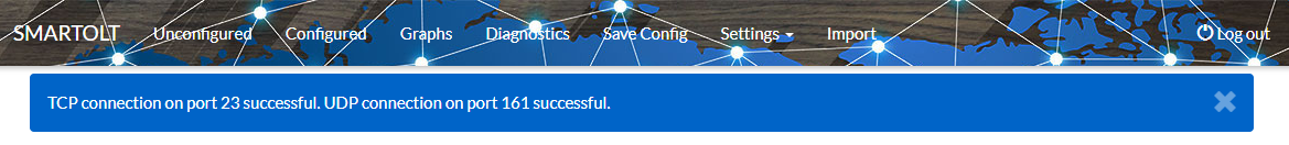 Once the OLT is added, you can edit its settings and press "Test Connection" button, to make sure OLT connectivity is complete. If everything went OK, you will see the following message: